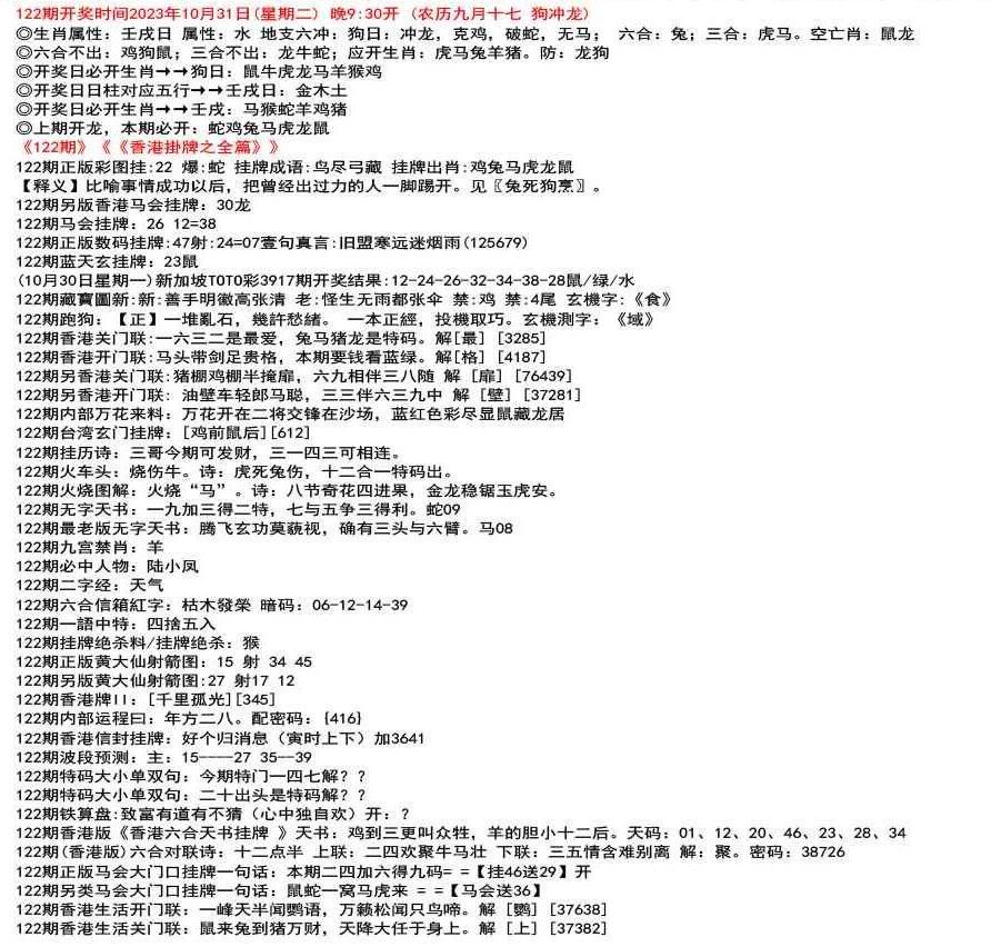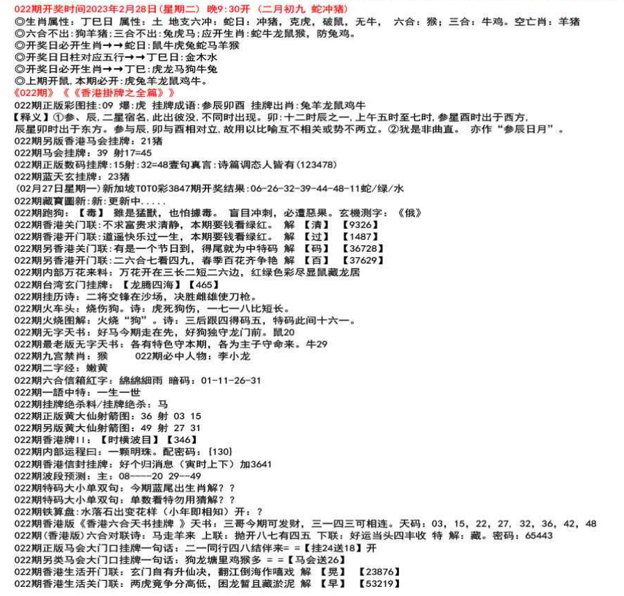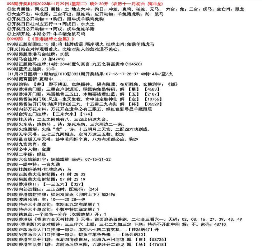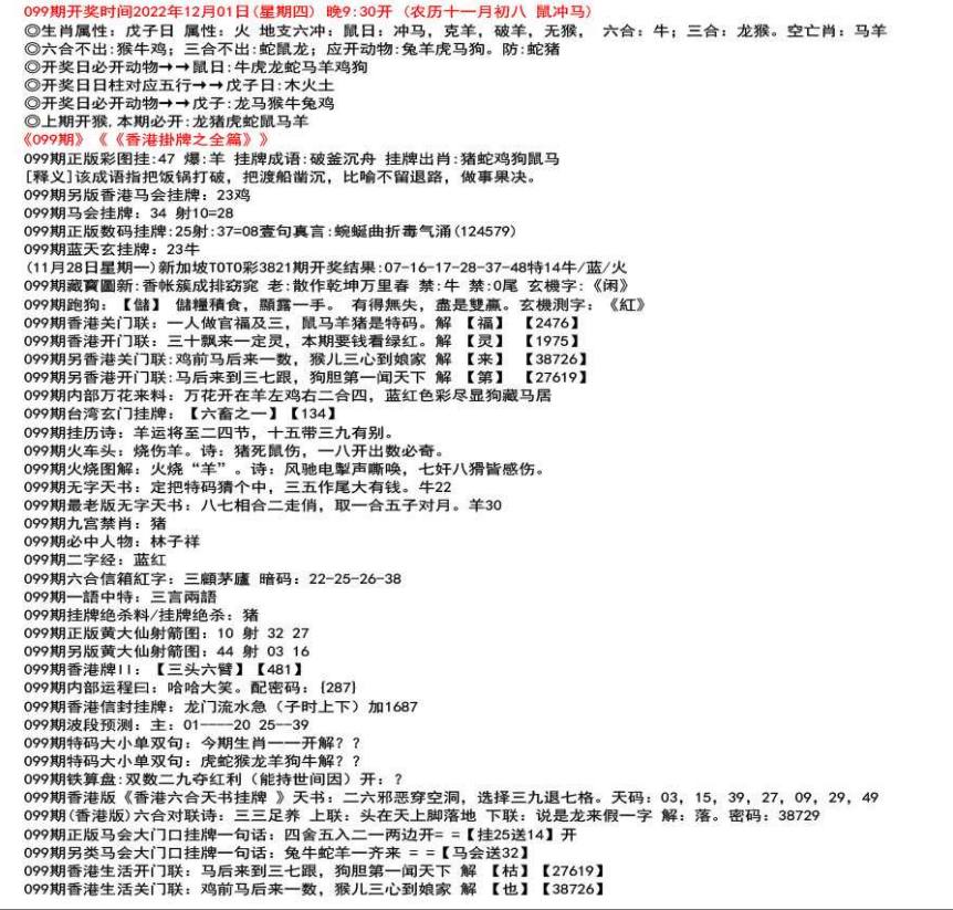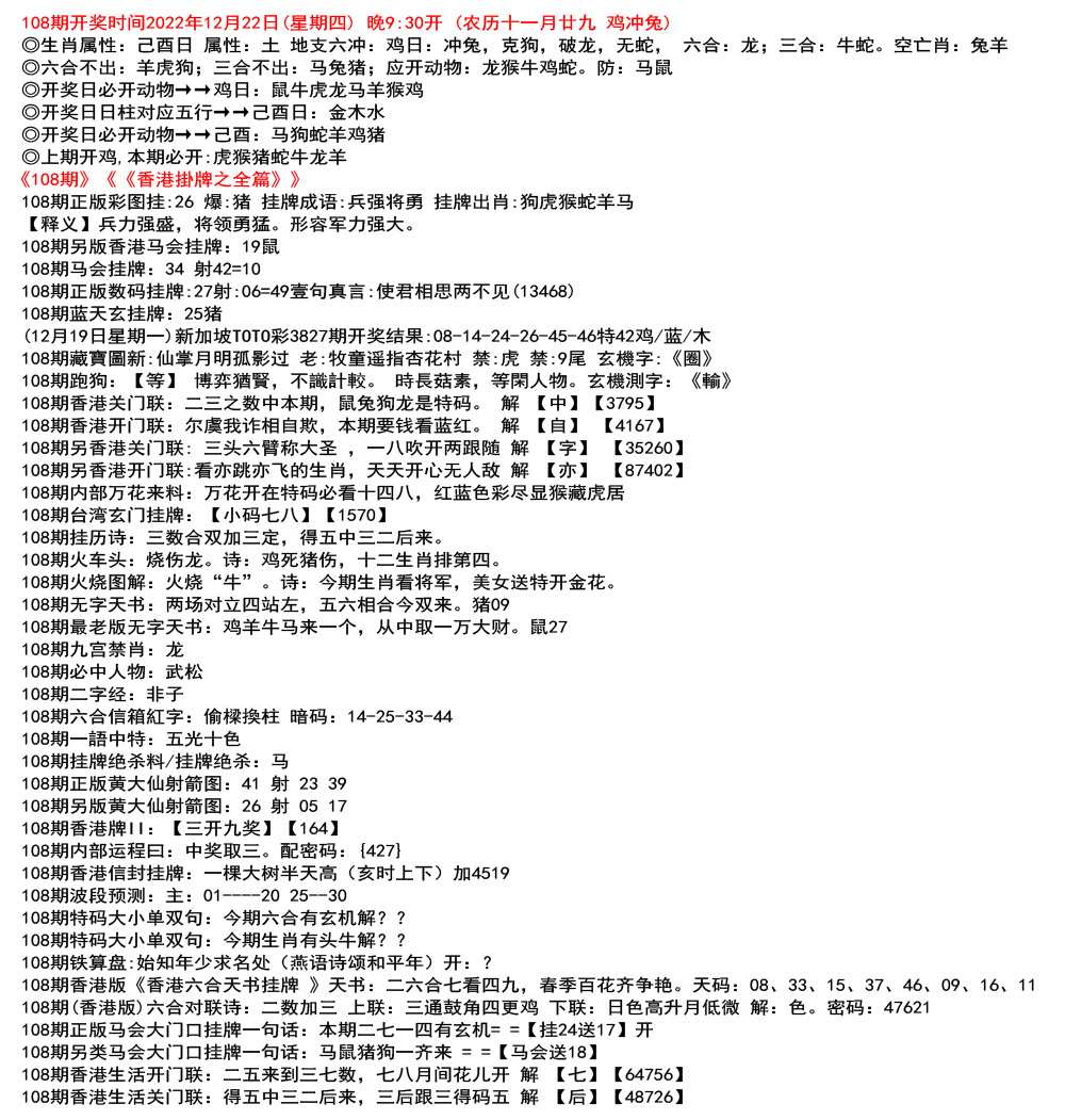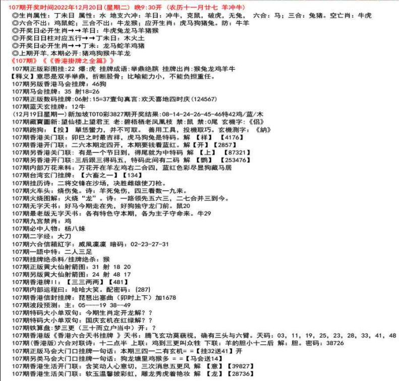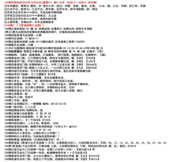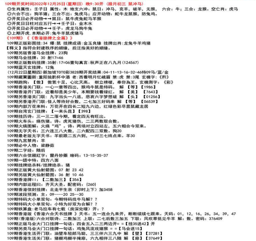 111期开奖时间2022年12月29日(星期四) 晚9:30开 (腊月初七 龙冲狗)