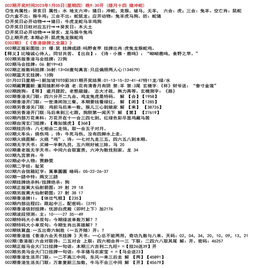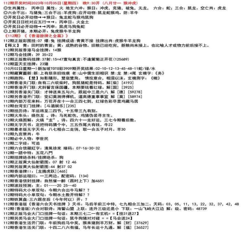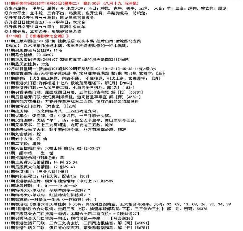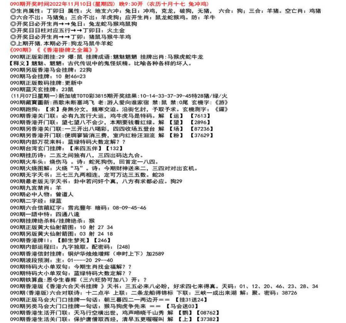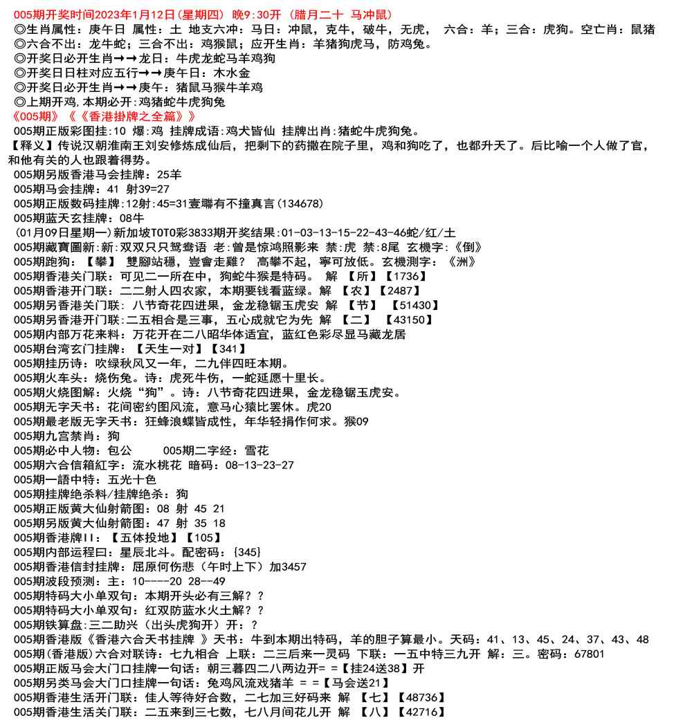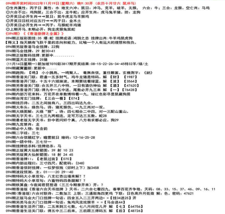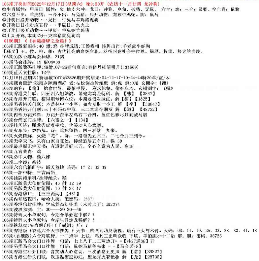 111期开奖时间2022年12月29日(星期四) 晚9:30开 (腊月初七 龙冲狗)