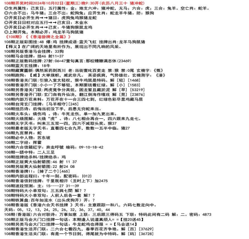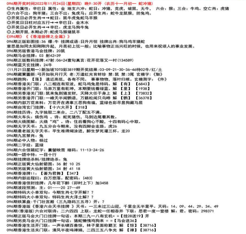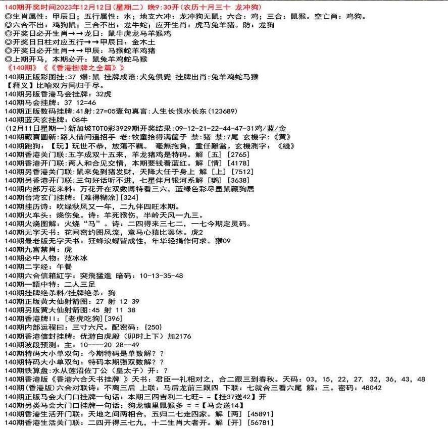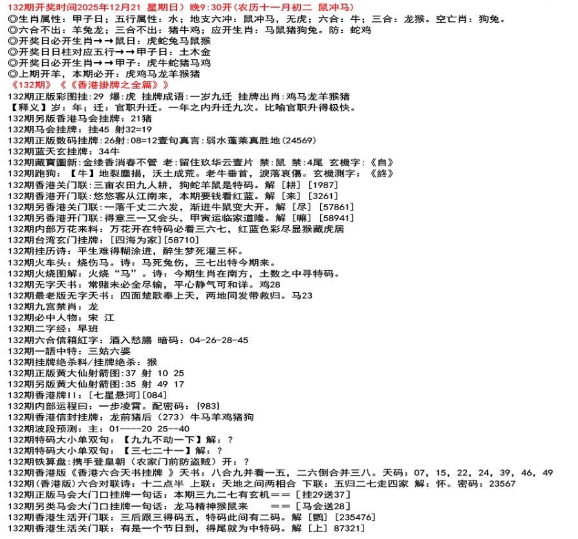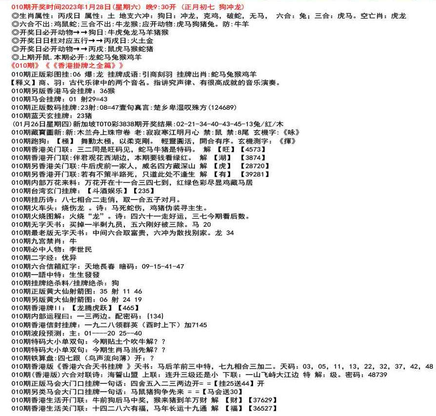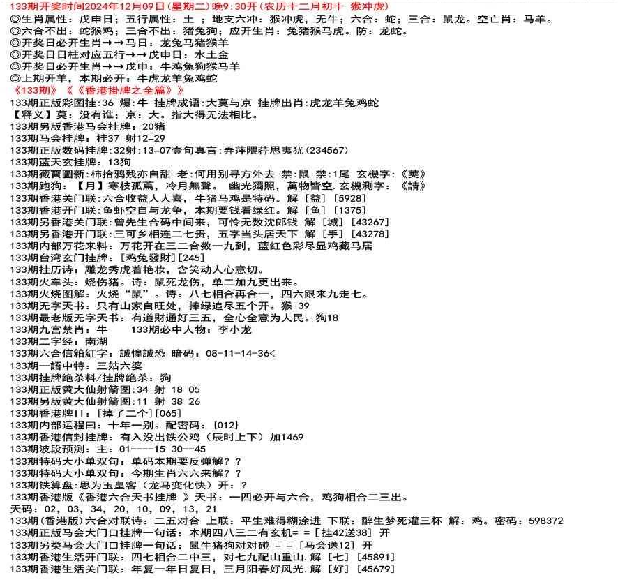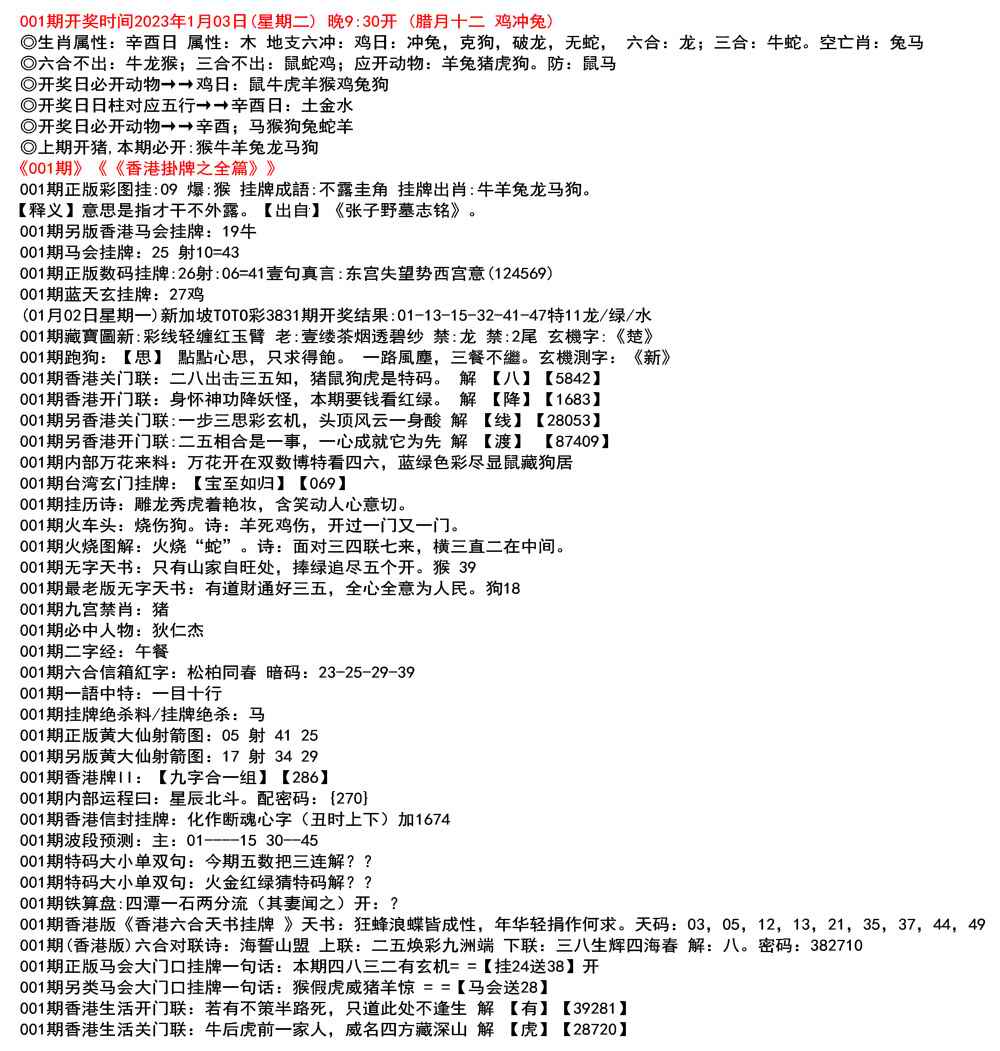 111期开奖时间2022年12月29日(星期四) 晚9:30开 (腊月初七 龙冲狗)