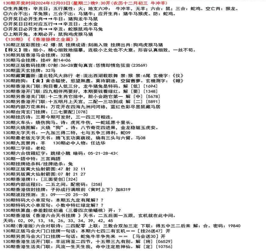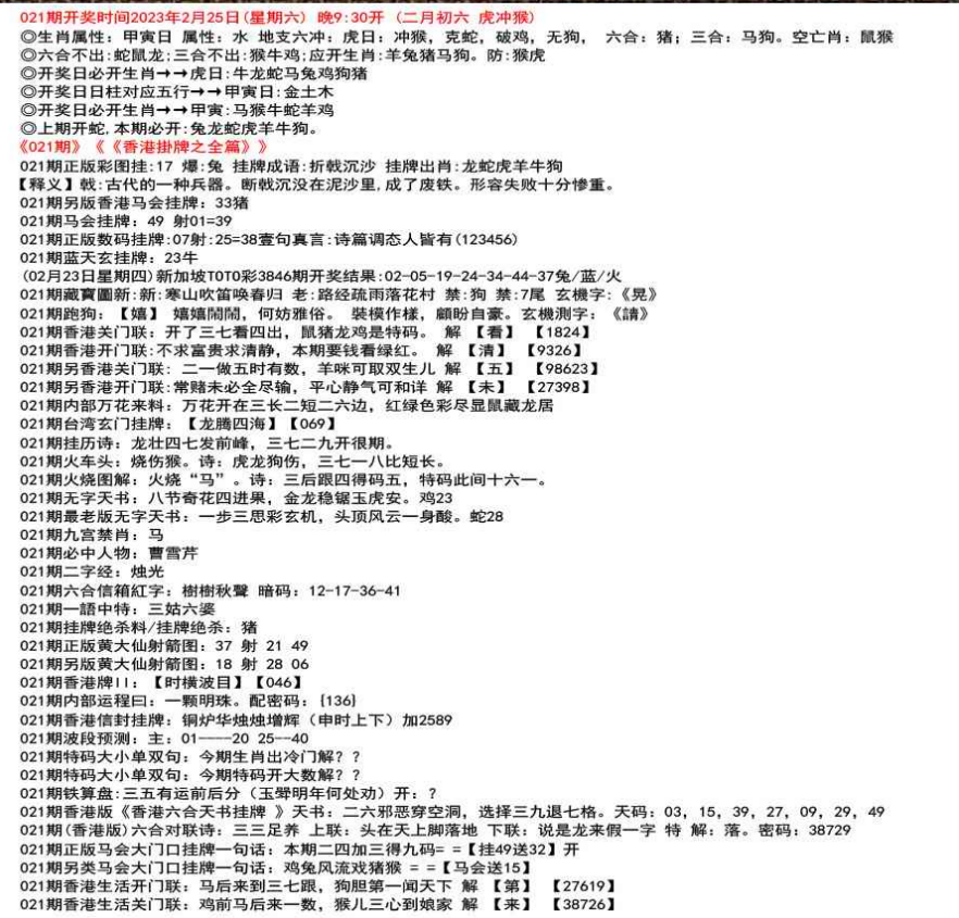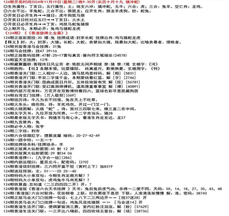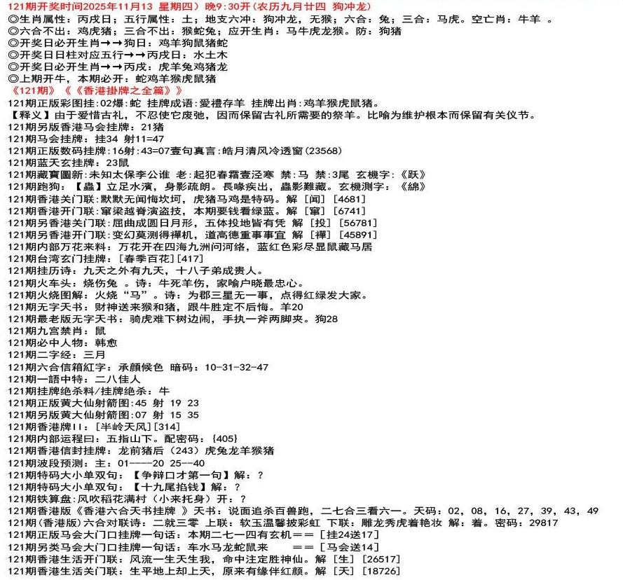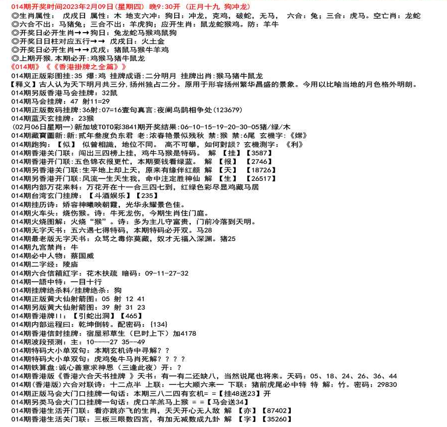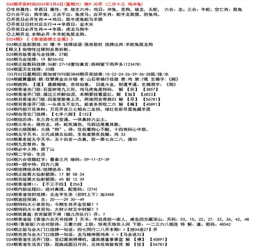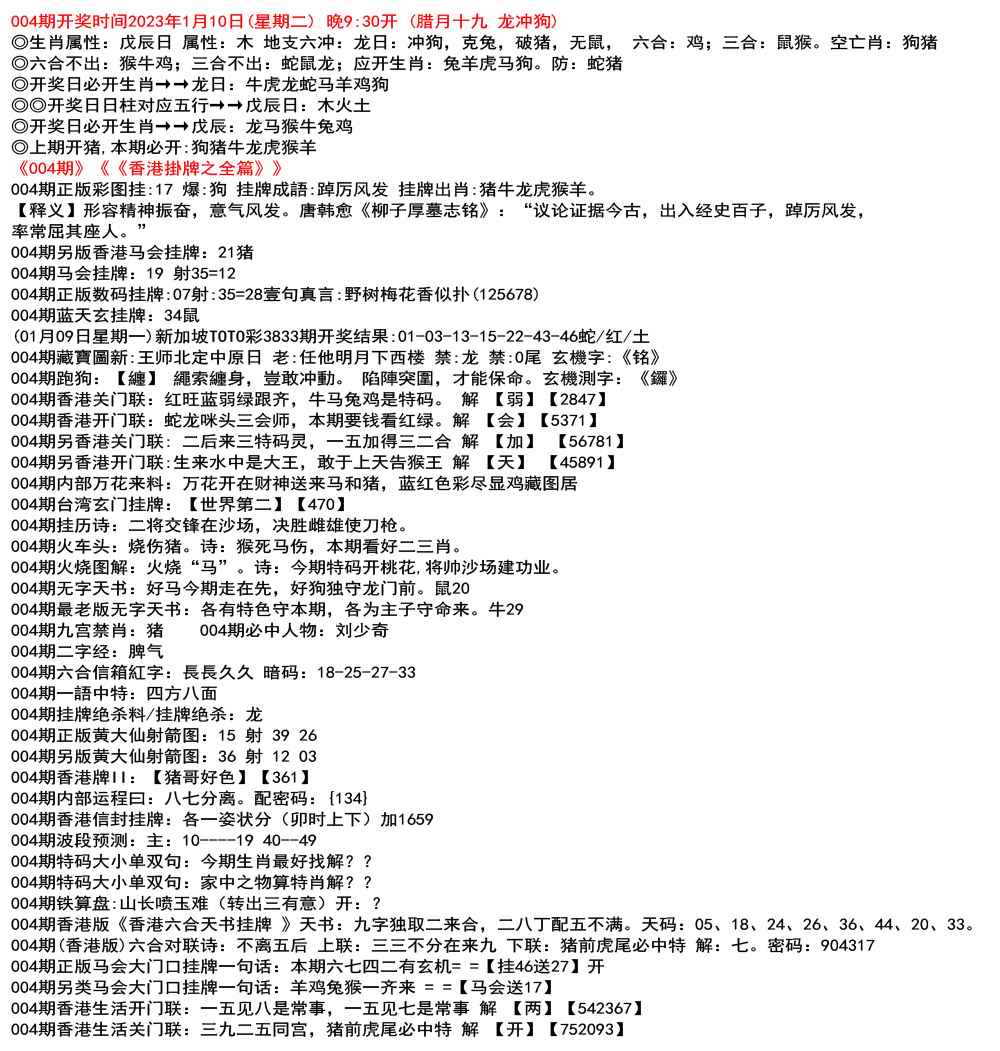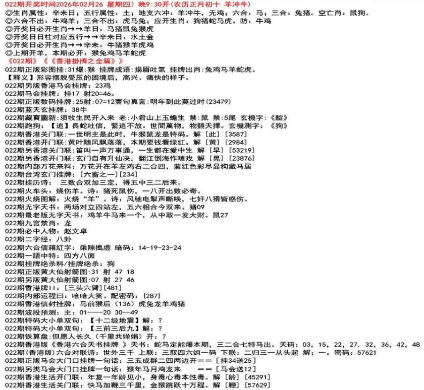 111期开奖时间2022年12月29日(星期四) 晚9:30开 (腊月初七 龙冲狗)