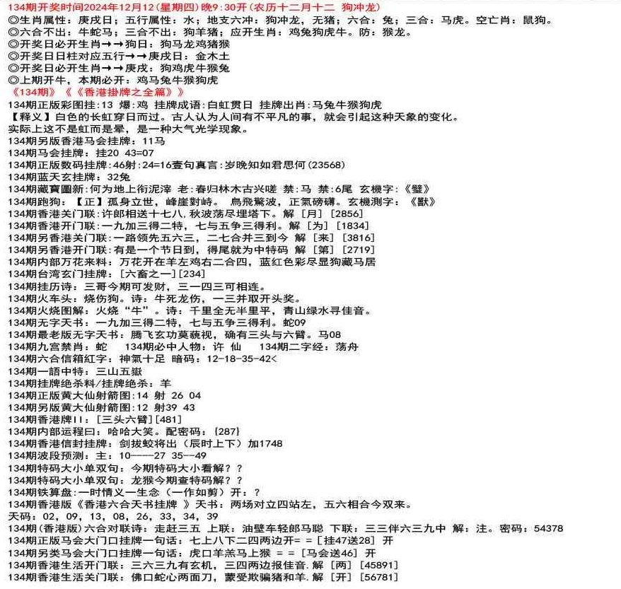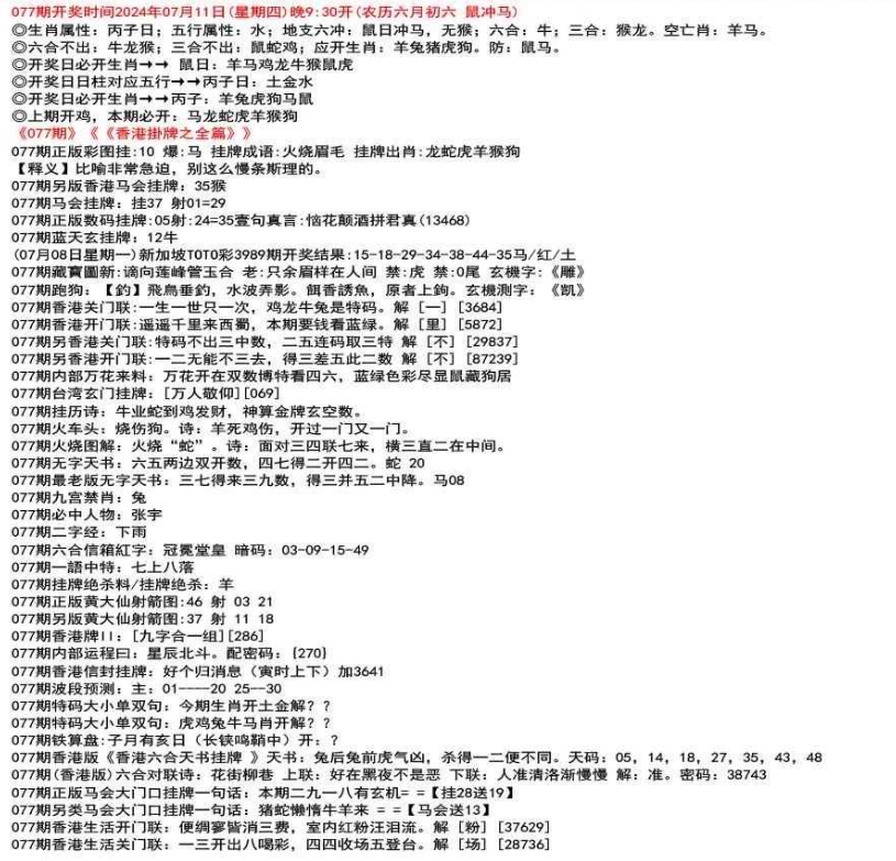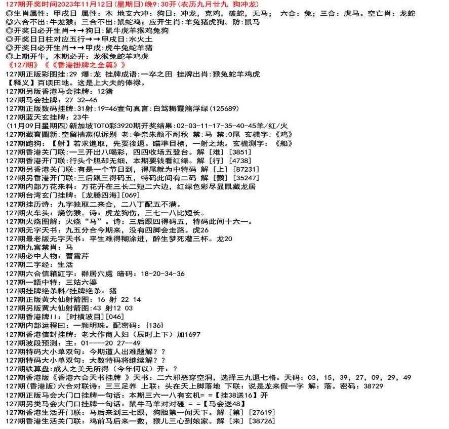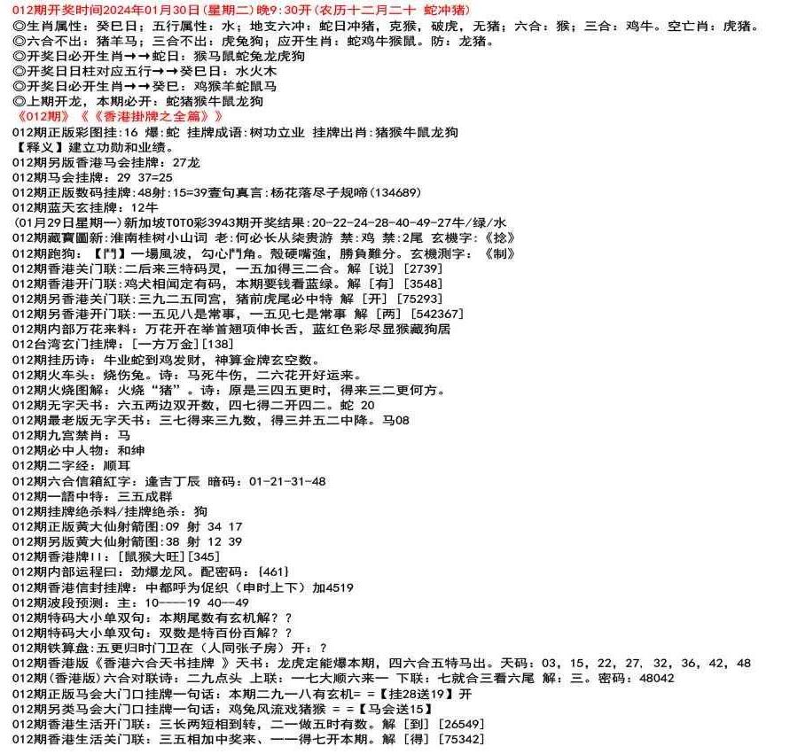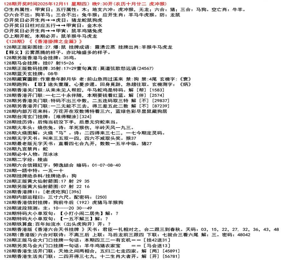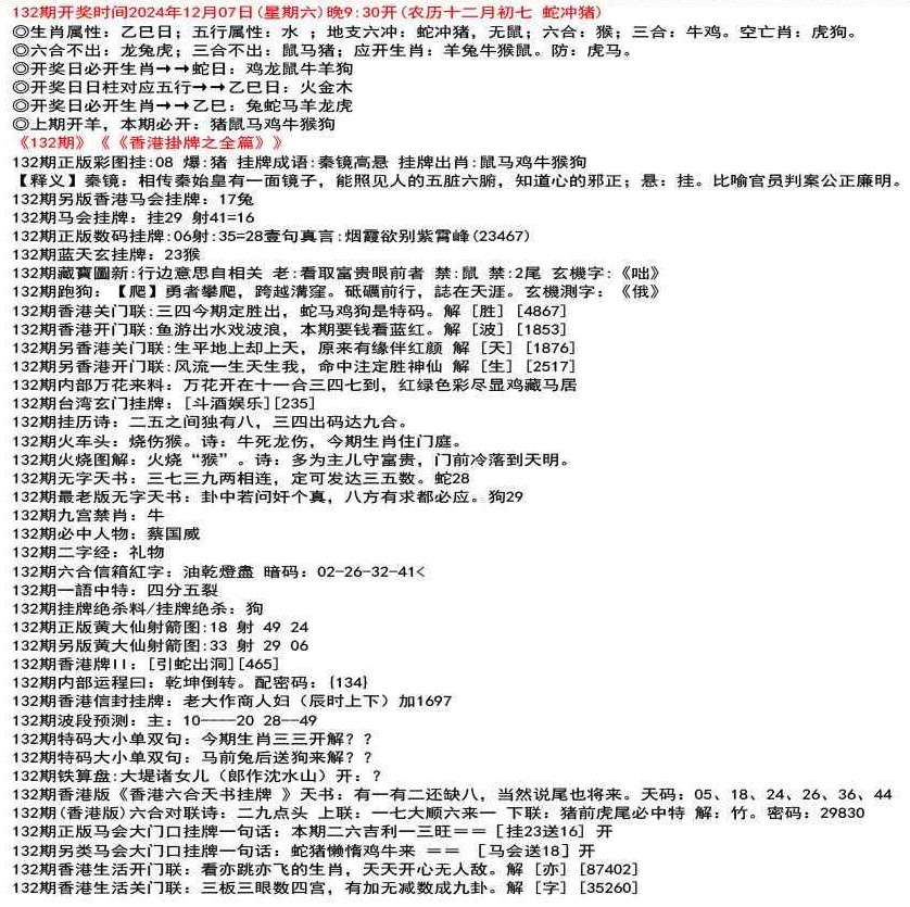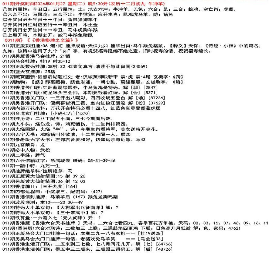 111期开奖时间2022年12月29日(星期四) 晚9:30开 (腊月初七 龙冲狗)