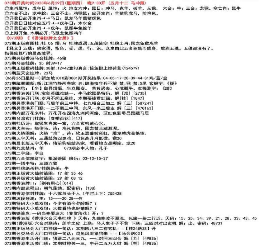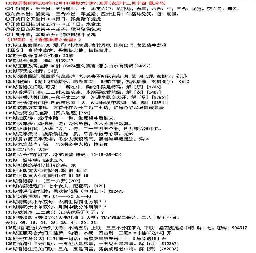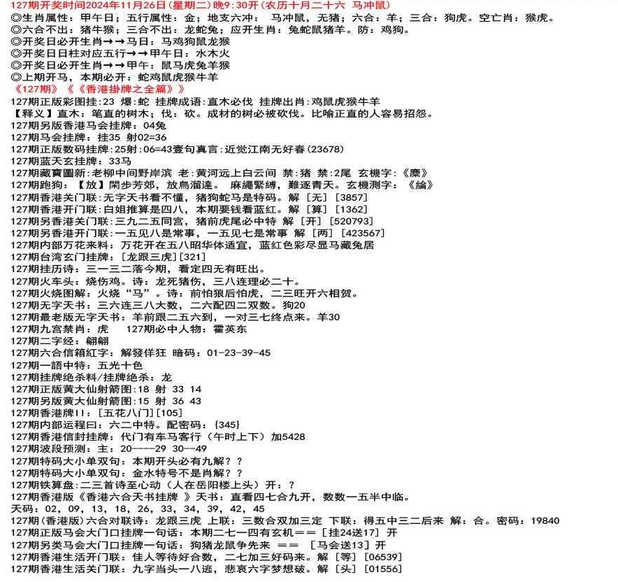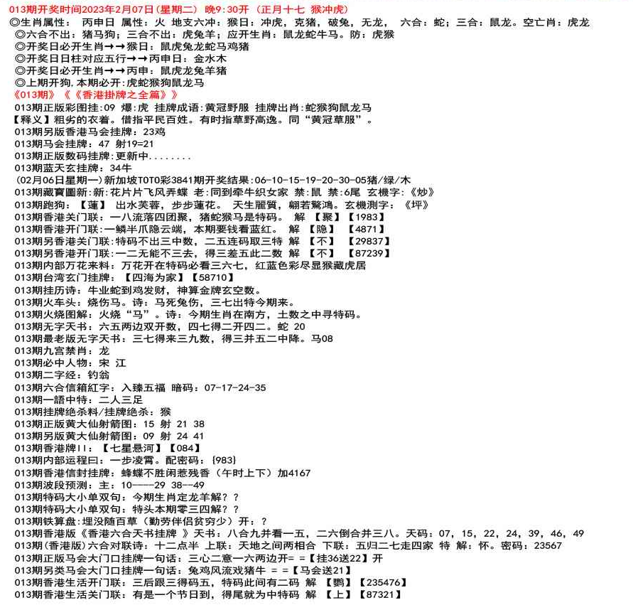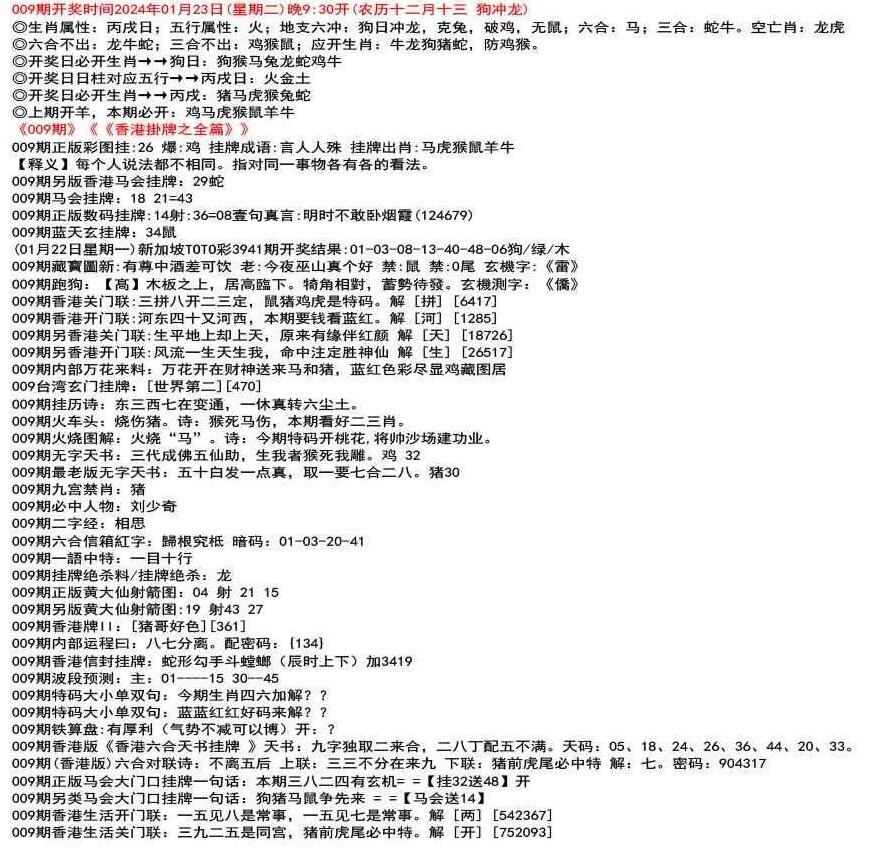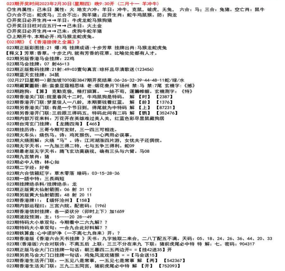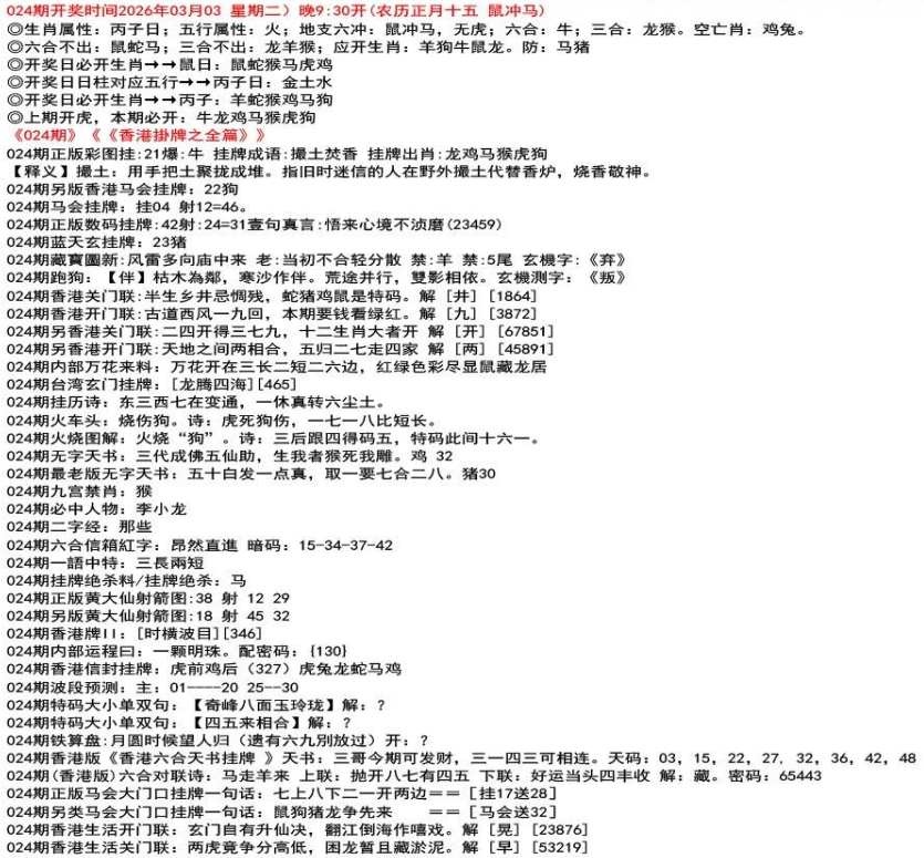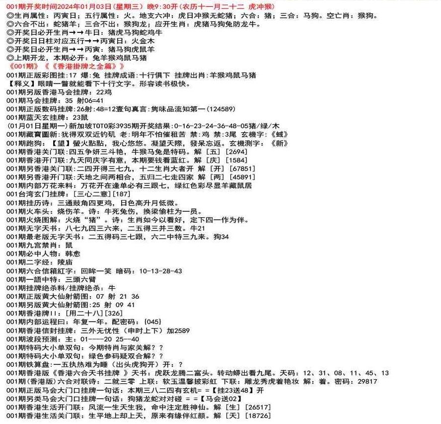 111期开奖时间2022年12月29日(星期四) 晚9:30开 (腊月初七 龙冲狗)