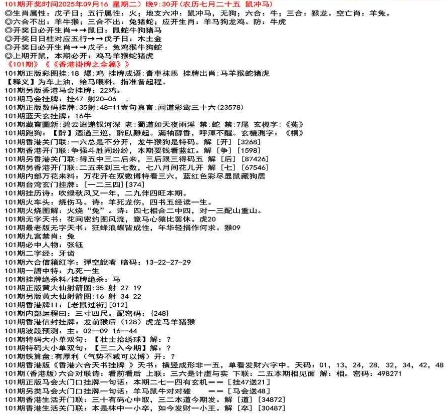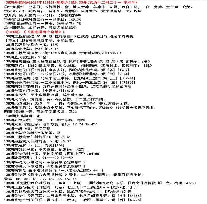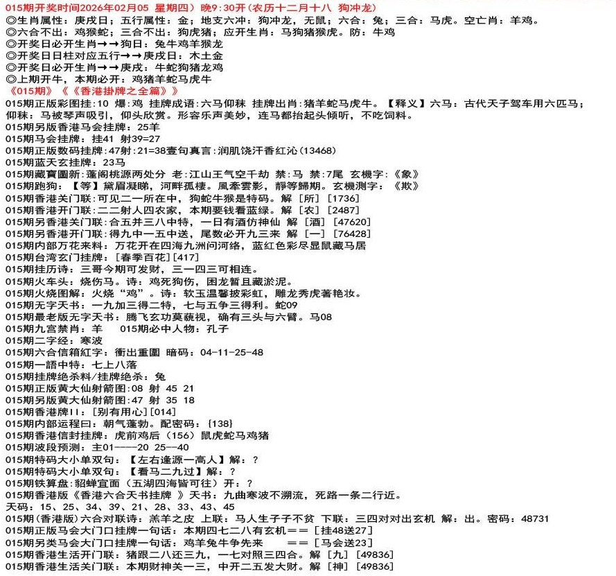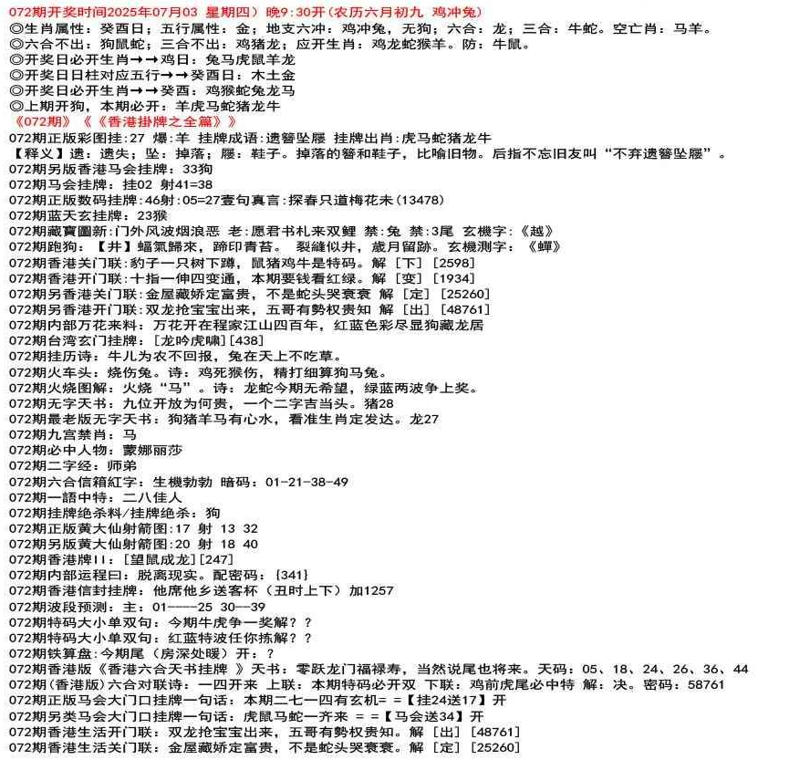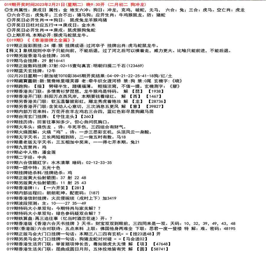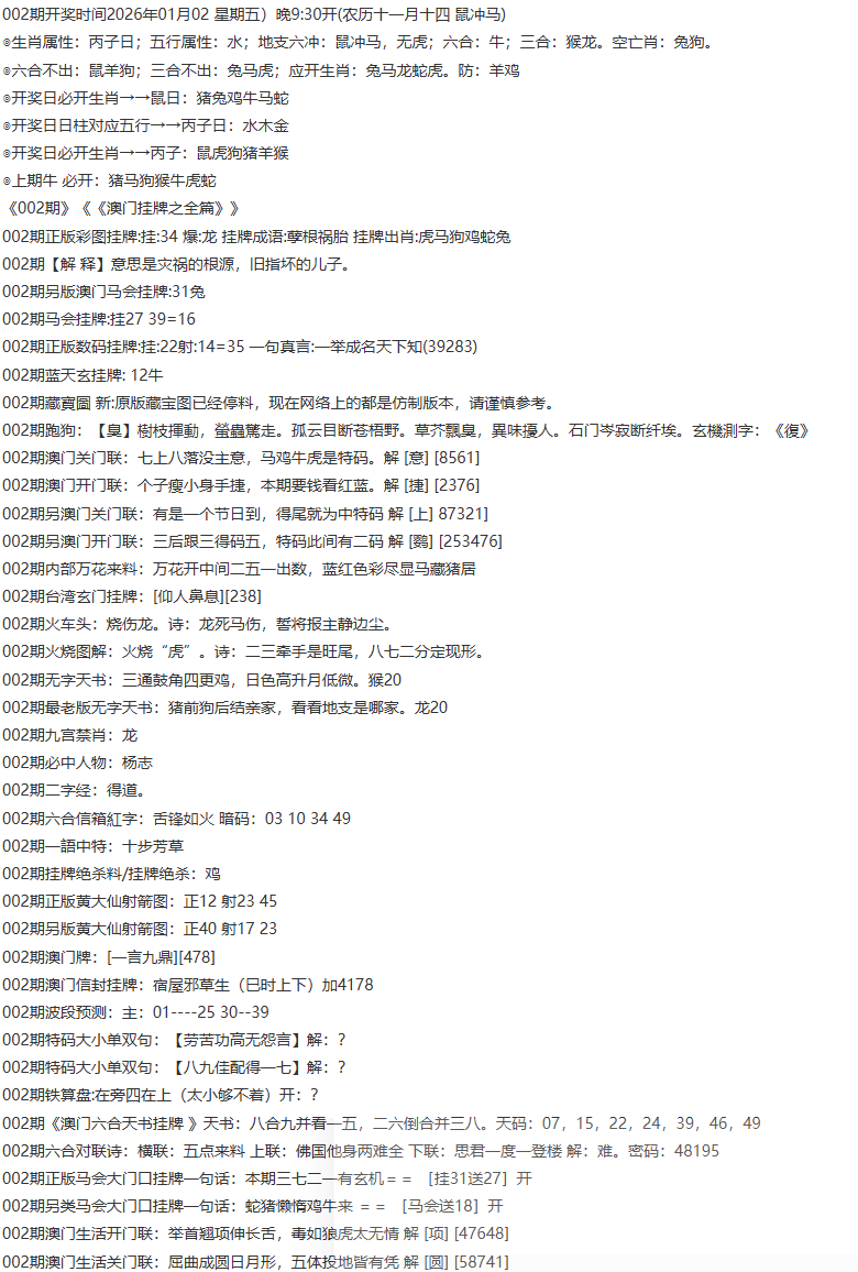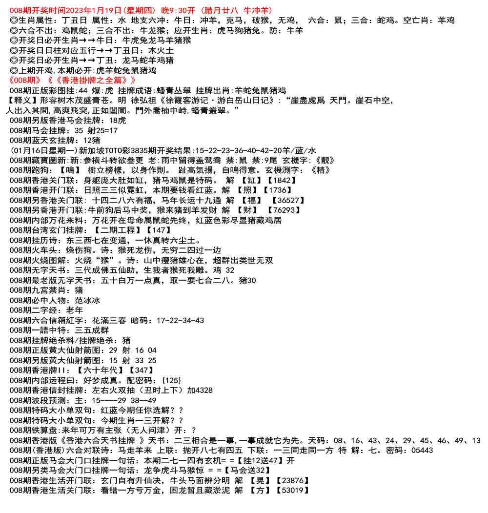 111期开奖时间2022年12月29日(星期四) 晚9:30开 (腊月初七 龙冲狗)
