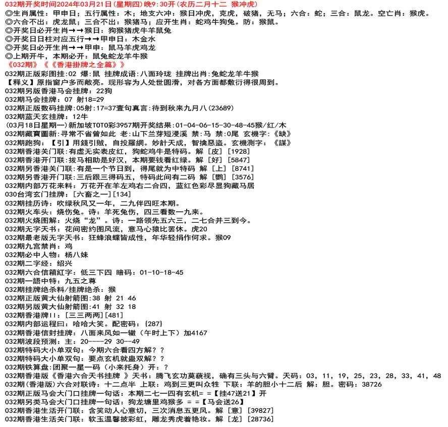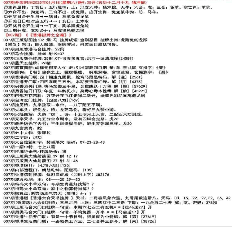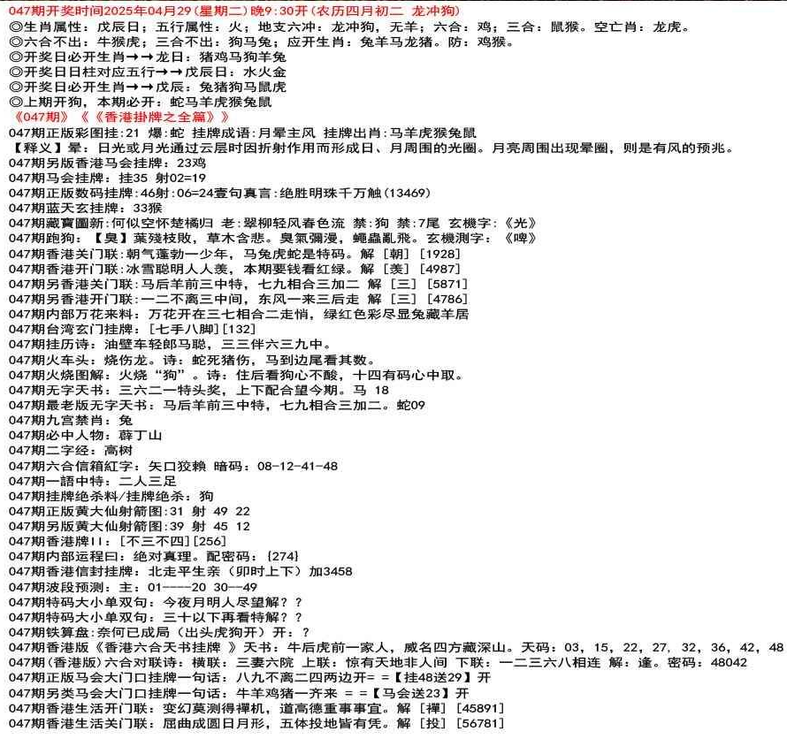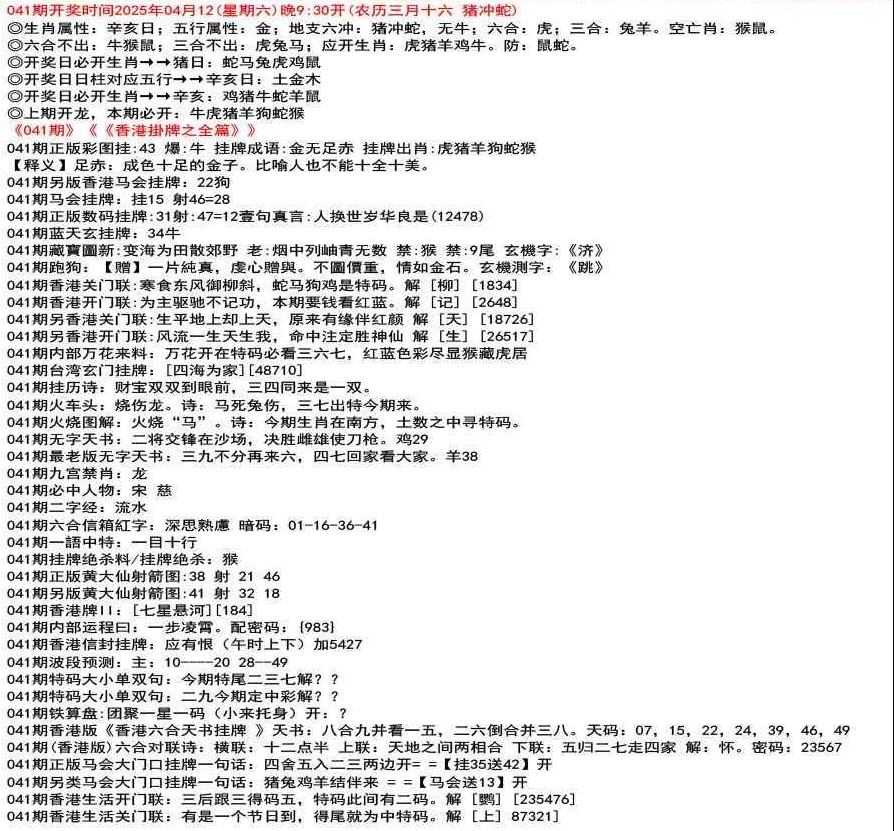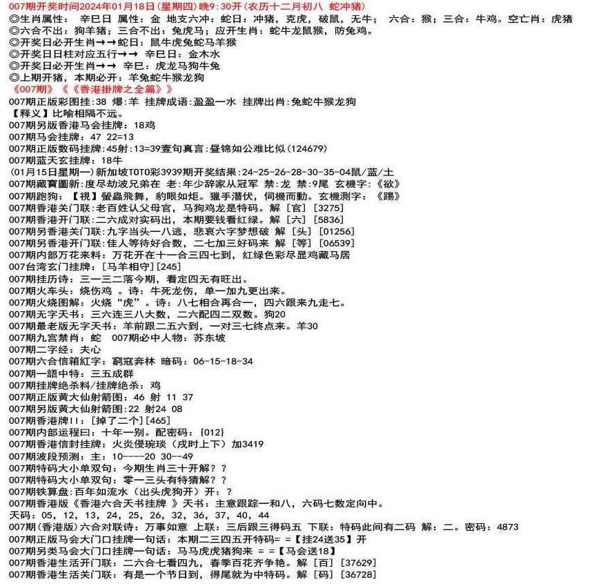111期(香港版)六合对联诗:三三足养 上联:头在天上脚落地 下联:说是龙来假一字 解:落。密码:38729