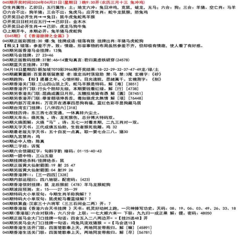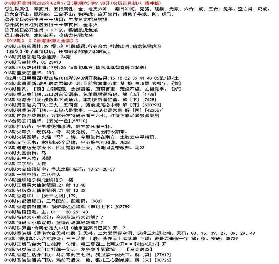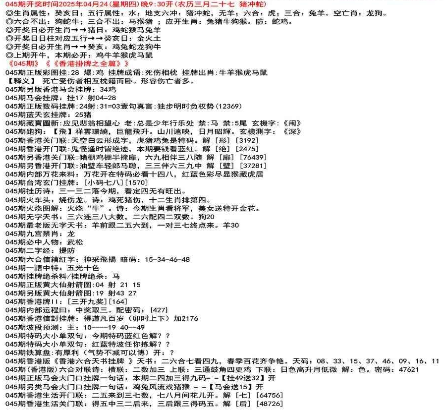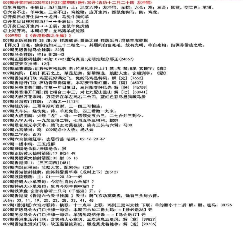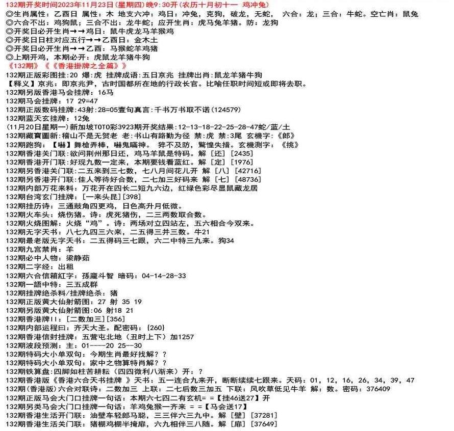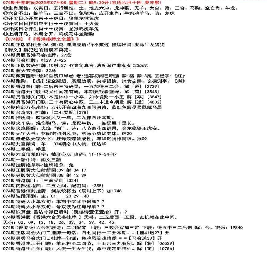 111期(香港版)六合对联诗:三三足养 上联:头在天上脚落地 下联:说是龙来假一字 解:落。密码:38729