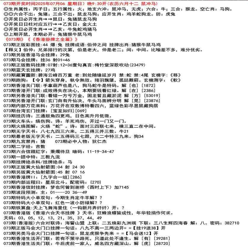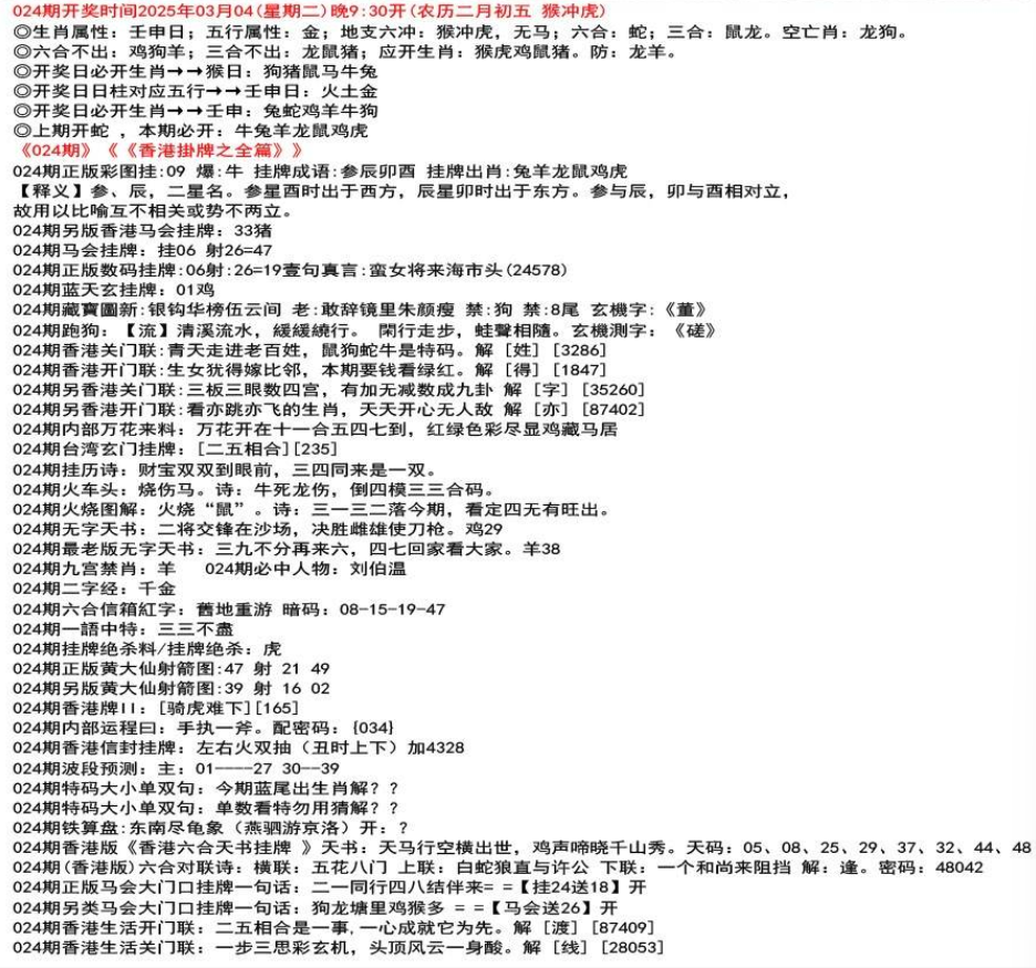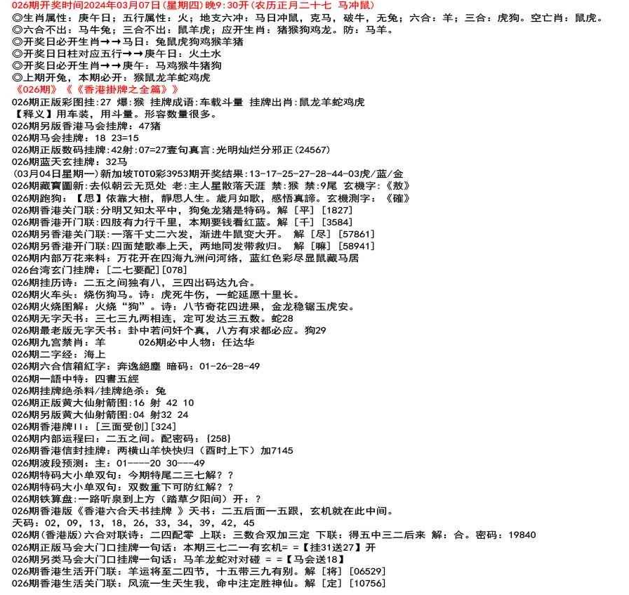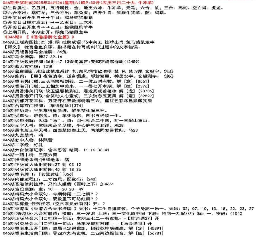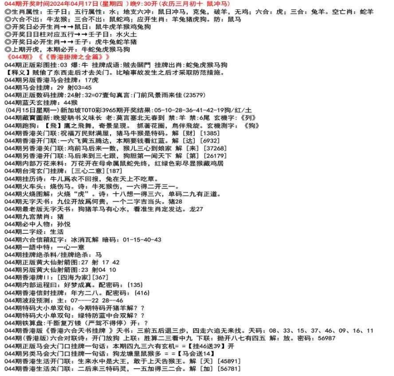 ◎六合不出:牛龙猴;三合不出:鼠蛇鸡;应开动物:羊兔猪虎狗。防:鼠马