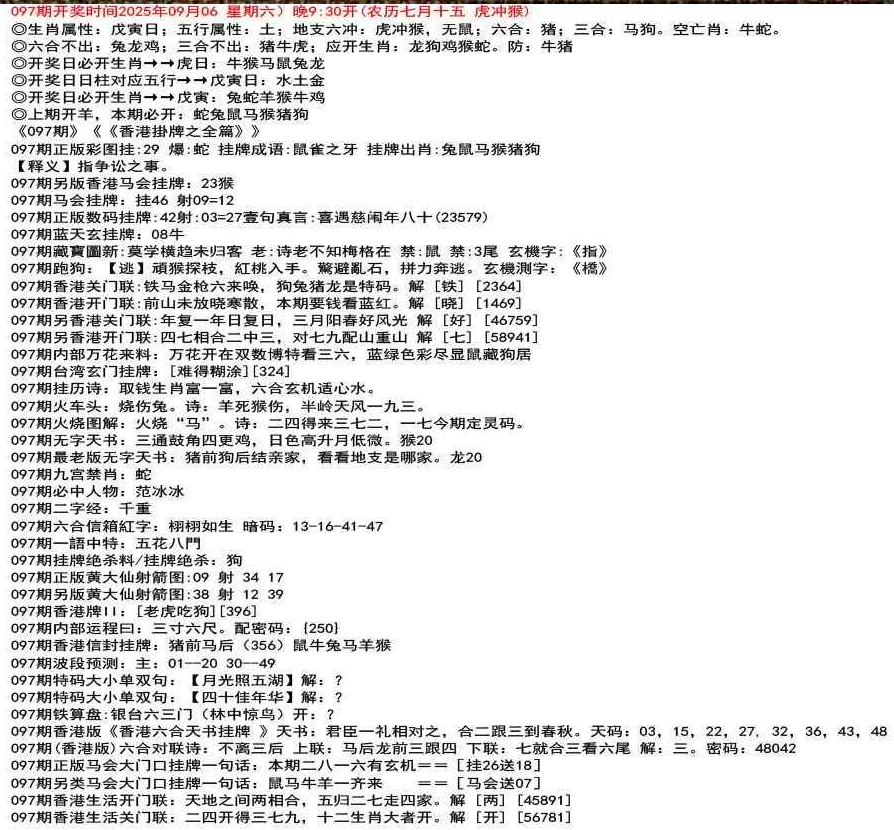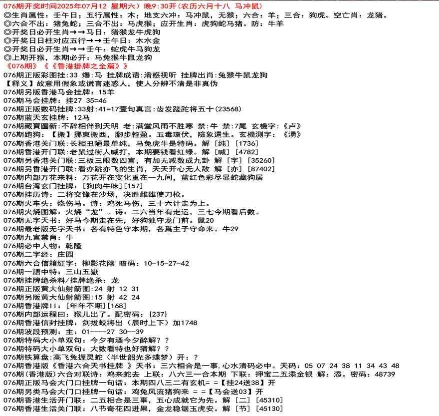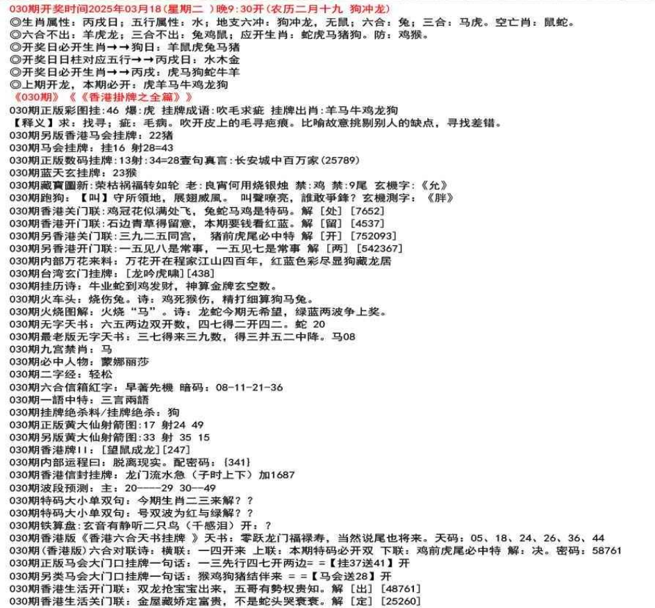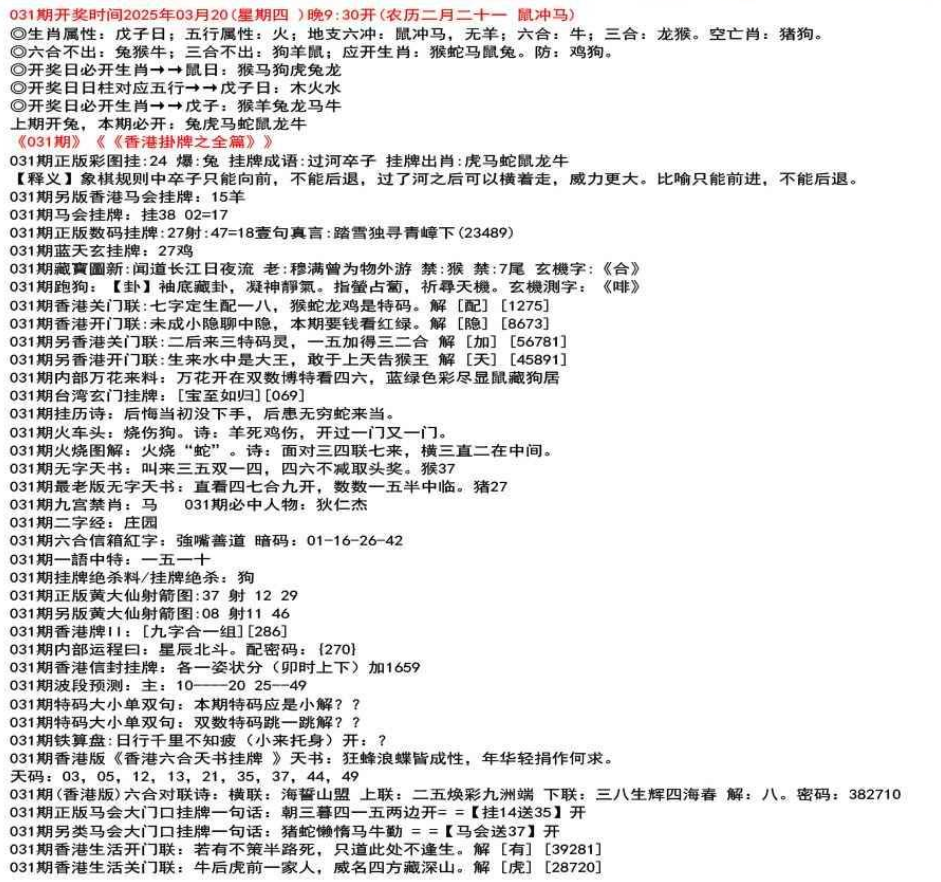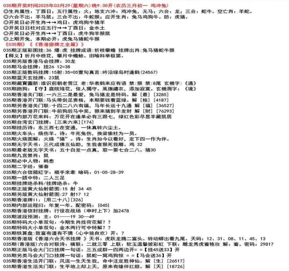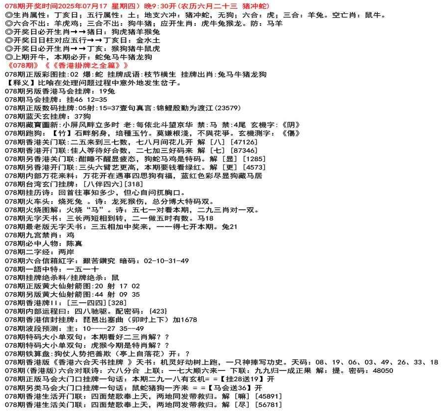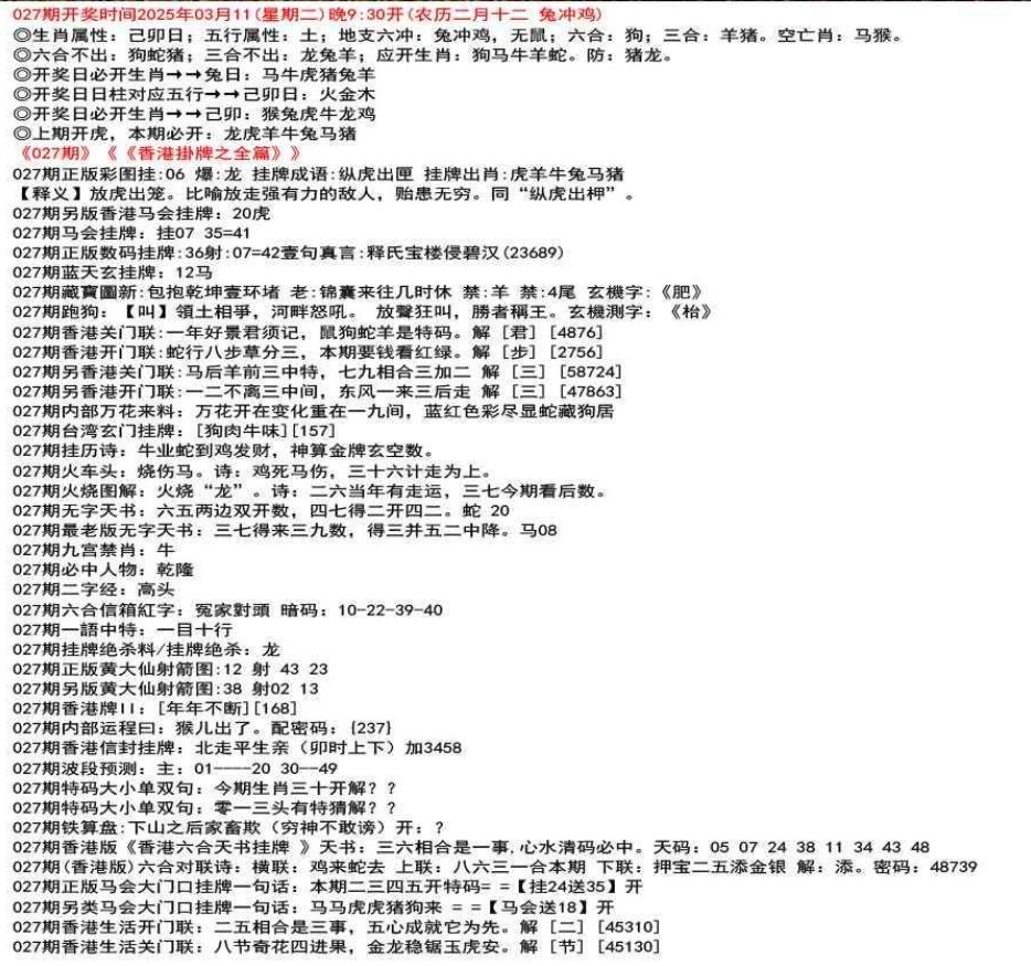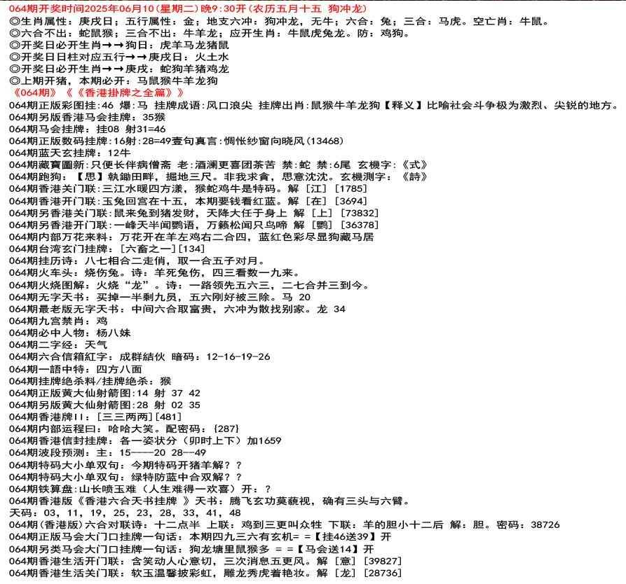 111期香港牌II:【天干之将】【179】