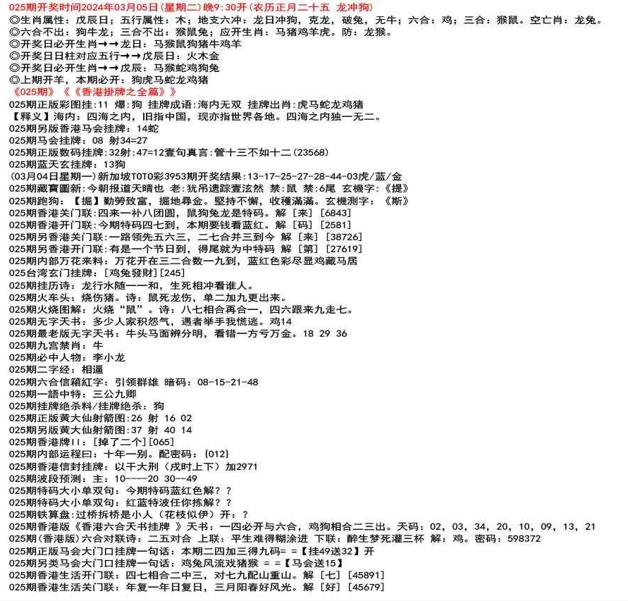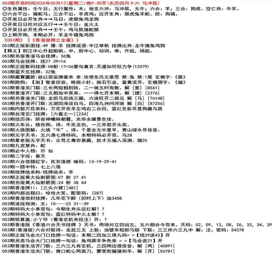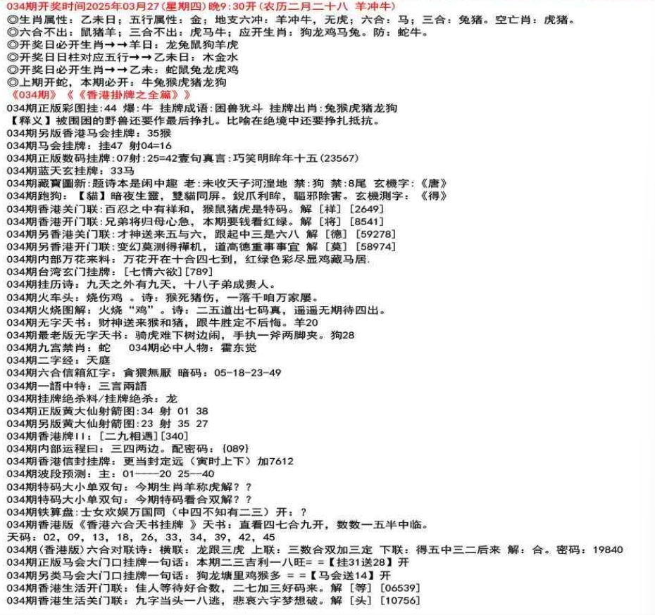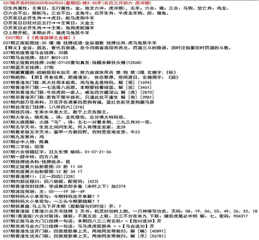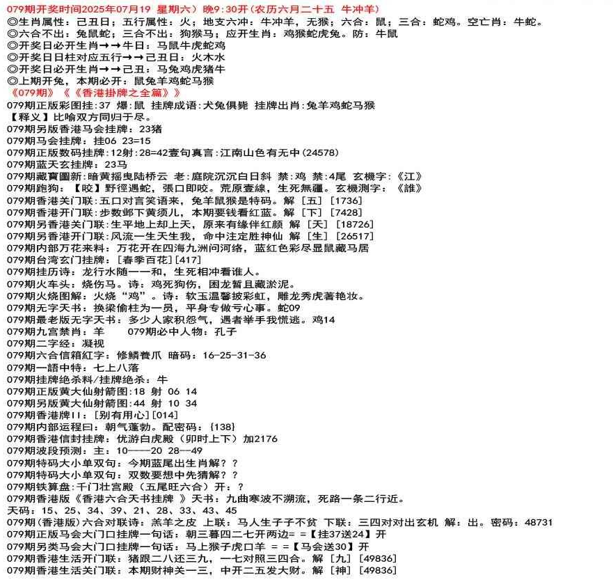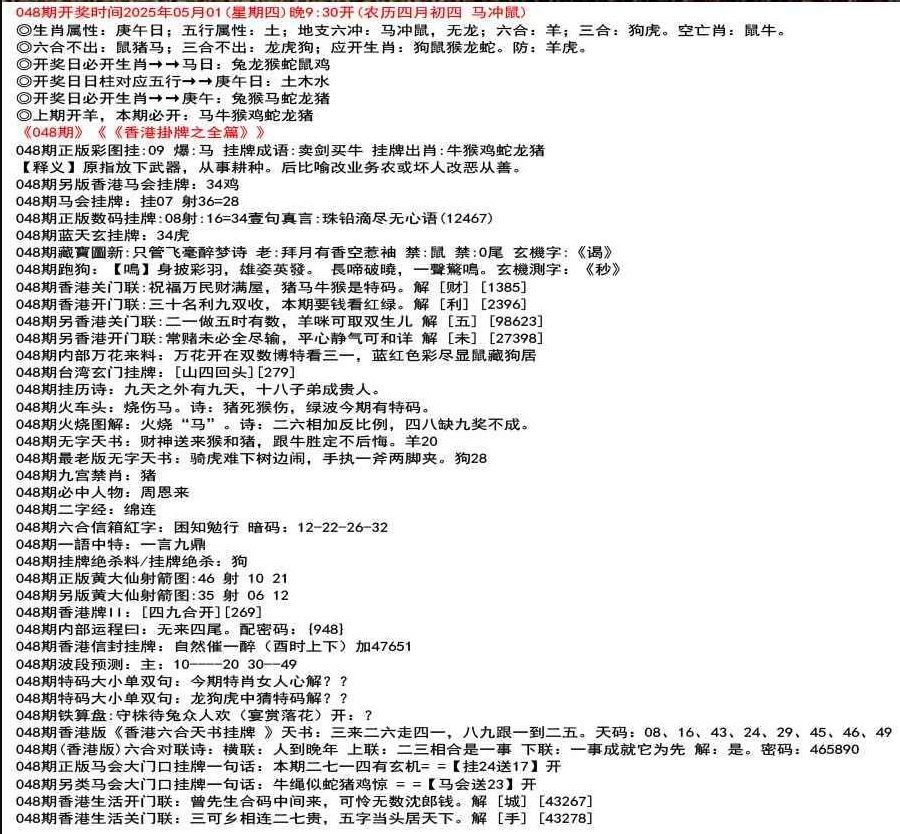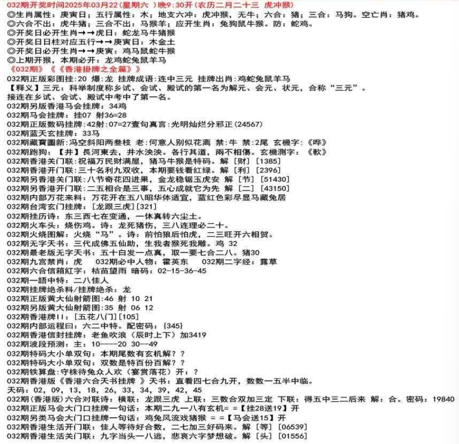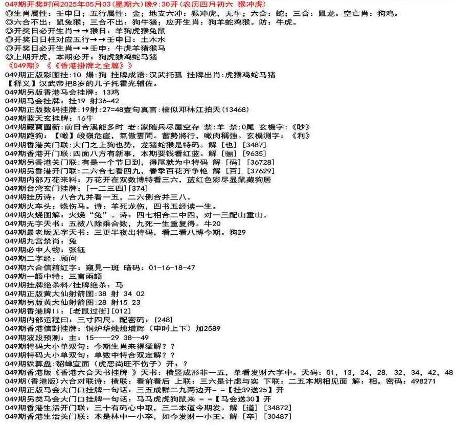 111期香港牌II:【天干之将】【179】