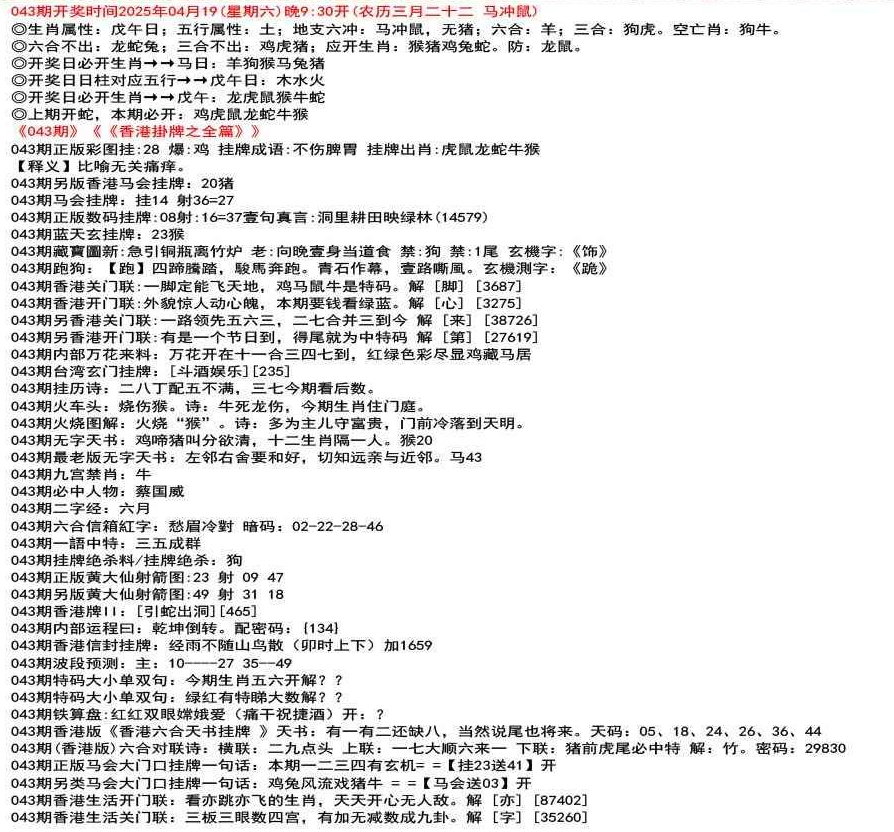 111期香港生活关门联:鸡前马后来一数,猴儿三心到娘家 解 【来】【38726】