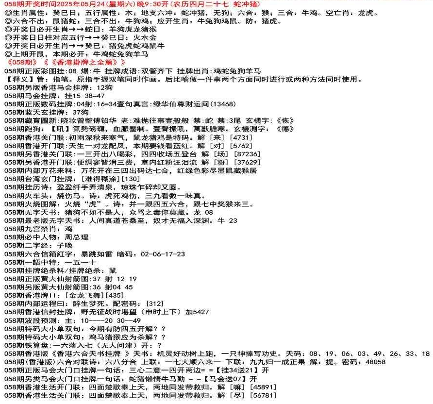 111期台湾玄门挂牌:【五光十色】【58710】