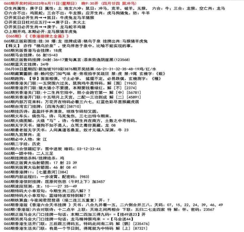 111期特码大小单双句:特码一二三门万解??